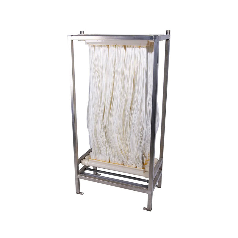 Состоит из полой волокнистой мембраны из ПВДФ, структура встроенной аэрационной трубки значительно улучшает эффект очистки воздуха из завесной мембраны во время использования,который полезен для стабильности работы мембраны.